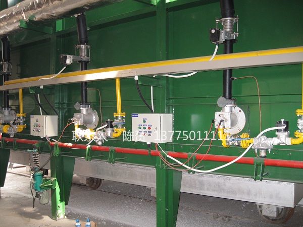8、 加熱采用高速燒嘴,均布兩側(cè)。連續(xù)比例調(diào)節(jié)燃燒。執(zhí)行器調(diào)節(jié)風(fēng)量的大小,通過比例閥來調(diào)節(jié)燃?xì)饬康拇笮。_到空燃比例燃燒,燃?xì)夂惋L(fēng)量設(shè)有下限限幅,每個燒嘴的燃?xì)夤苌显O(shè)有控制電磁閥,每個燒嘴配有獨立完整的燃燒控制器,具有自動點火,火焰檢測,滅火報警自動斷氣。這樣充分保證燃燒溫控系統(tǒng)的穩(wěn)定性、安全性。